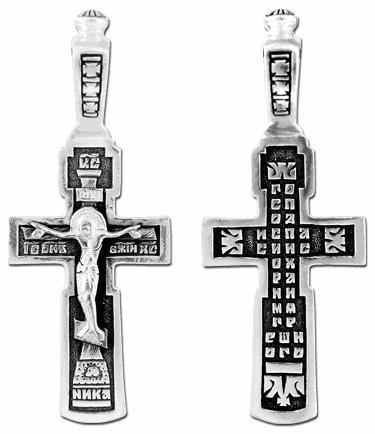 Крест серебрянный, Чернение (оксидирование), с корундами, Господи, спаси и сохрани, коллекция "Санкт-Петербург", 3.31 гр., арт. 225787