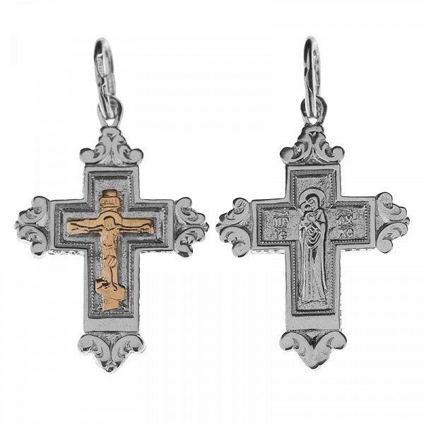 Крест серебро/золото, с корундами, Богородица, Золотые купола, 1.38 гр., арт. ПР.К.000730
