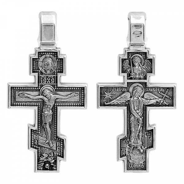 Крест серебрянный, Чернение (оксидирование), с корундами, Ангел-Хранитель-Михаил Архангел, Акимов, 6.78 гр., арт. ПР.К.000776