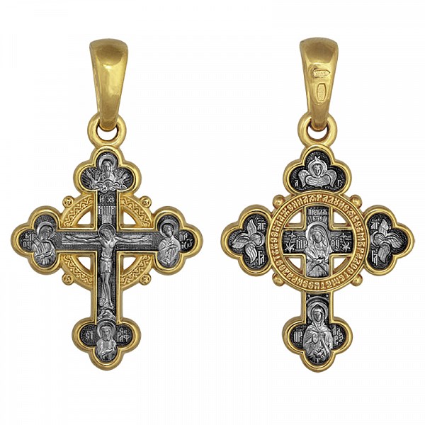 Крест серебрянный, Позолота желтая 999* Чернение (оксидирование), с корундами, Серафим Саровский Св., Акимов, 3.99 гр., арт. ПР.К.000774