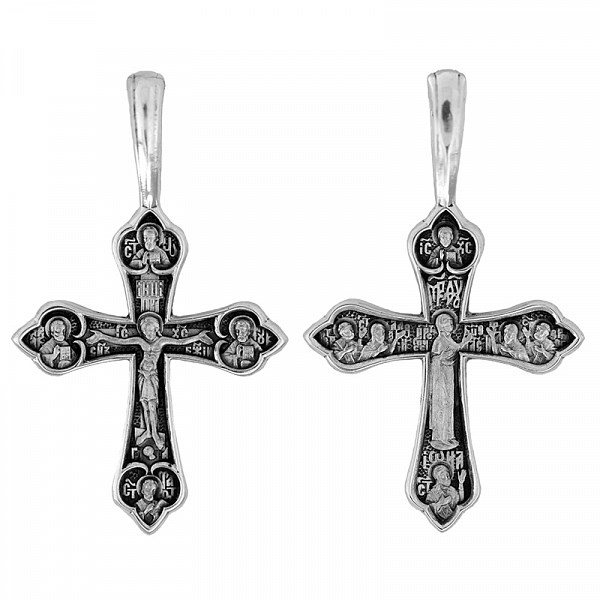 Крест серебрянный, Чернение (оксидирование), с корундами, Богородица, Акимов, 1.97 гр., арт. ПР.К.000772
