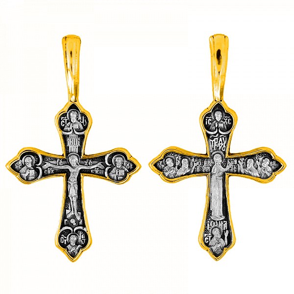 Крест серебрянный, Позолота желтая 999* Чернение (оксидирование), с корундами, Богородица, Акимов, 1.87 гр., арт. ПР.К.000771