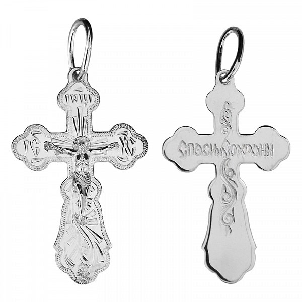 Крест серебрянный, с корундами, Спаси и сохрани, Москва златоглавая-2, 3.30 гр., арт. ПР.К.000693