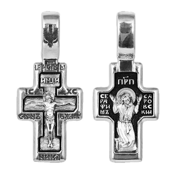 Крест серебрянный, Чернение (оксидирование), с корундами, Серафим Саровский Св., коллекция "Санкт-Петербург", 8.84 гр., арт. ПР.К.000638
