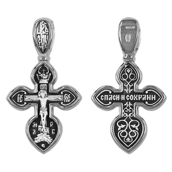 Крест серебрянный, Чернение (оксидирование), с корундами, Спаси и сохрани, коллекция "Санкт-Петербург", 3.37 гр., арт. ПР.К.000629