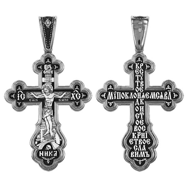 Крест серебрянный, Чернение (оксидирование), с корундами, Кресту твоему поклоняемся, Владыко, коллекция "Санкт-Петербург", 21.10 гр., арт. ПР.К.000627