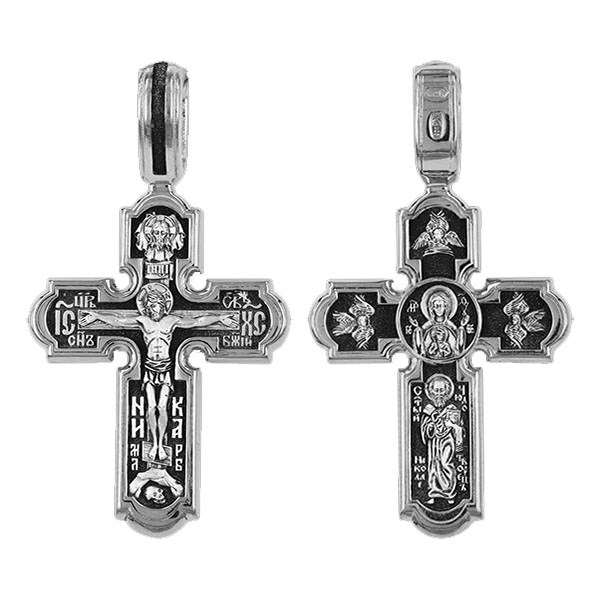 Крест серебрянный, Чернение (оксидирование), с корундами, Знамение Божья Матерь, коллекция "Санкт-Петербург", 4.90 гр., арт. ПР.К.000618