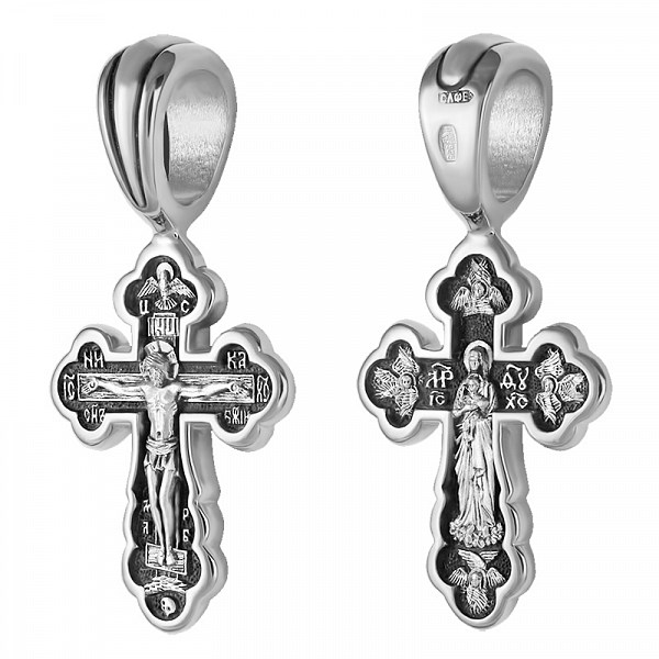 Крест серебрянный, Чернение (оксидирование), с корундами, Валаамская Божья Матерь, коллекция "Санкт-Петербург", 2.88 гр., арт. ПР.К.000611