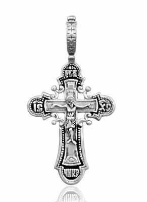 Крест серебрянный, Чернение (оксидирование), с корундами, Да воскреснет Бог..., коллекция "Иваново", 5.84 гр., арт. 225516