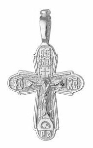 Это освященное православное изделие - Крест из серебра 925 пробы. Произведено по типу литье. Имеет вставки из корундов. Цвета камней представлены в ассортименте. Если хотите конкретный цвет, то уточните возможность его выбора у менеджера при заказе. Изделие входит в коллекцию Иваново. Весит, от 1.21 гр.
