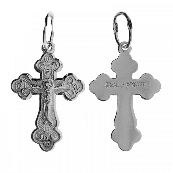 Крест серебрянный, с корундами, Спаси и сохрани, Светоч, 0.94 гр., арт. ПР.К.000593