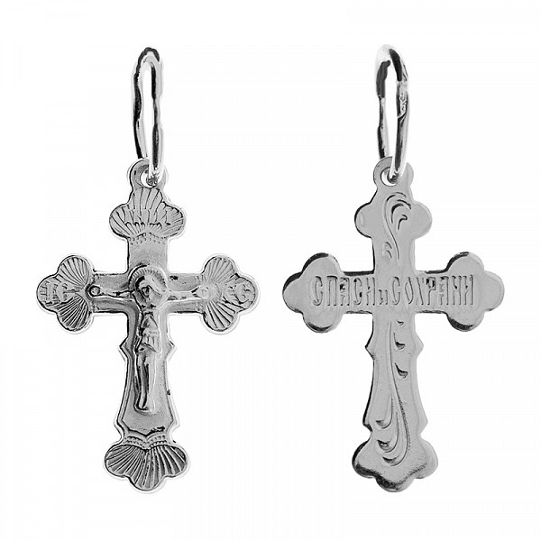 Крест серебрянный, с корундами, Спаси и сохрани, Светоч, 0.72 гр., арт. ПР.К.000559