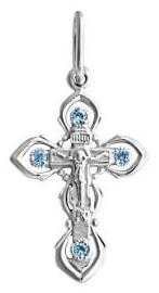 Это освященное православное изделие - Крест из серебра 925 пробы. Произведено по типу литье. Имеет вставки из корундов. Цвета камней представлены в ассортименте. Если хотите конкретный цвет, то уточните возможность его выбора у менеджера при заказе. Изделие входит в коллекцию Светоч. Весит, от 1.19 гр.