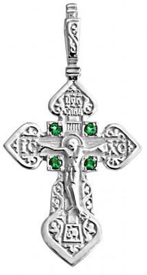 Это освященное православное изделие - Крест из серебра 925 пробы. Произведено по типу литье. Имеет вставки из корундов. Цвета камней представлены в ассортименте. Если хотите конкретный цвет, то уточните возможность его выбора у менеджера при заказе. Изделие входит в коллекцию Иваново. Весит, от 3.61 гр.