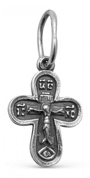 Крест серебрянный, Чернение (оксидирование), с корундами, Спаси и сохрани, Спаси и сохрани, 0.75 гр., арт. 226513