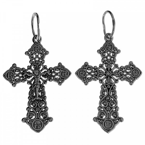 Крест серебрянный, Чернение (оксидирование), с корундами, Спаси и сохрани, 2.15 гр., арт. ПР.К.000348
