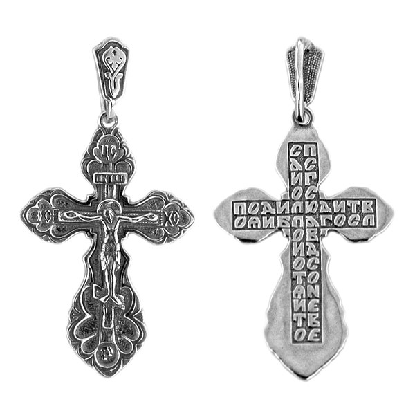 Крест серебрянный, Чернение (оксидирование), с корундами, Спаси и сохрани, Спаси и сохрани, 3.66 гр., арт. ПР.К.000321