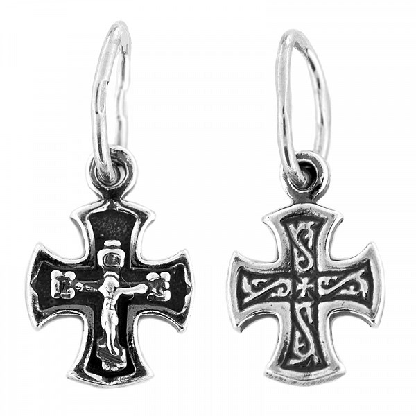Крест серебрянный, Чернение (оксидирование), с корундами, Спаси и сохрани, Спаси и сохрани, 1.20 гр., арт. ПР.К.000317