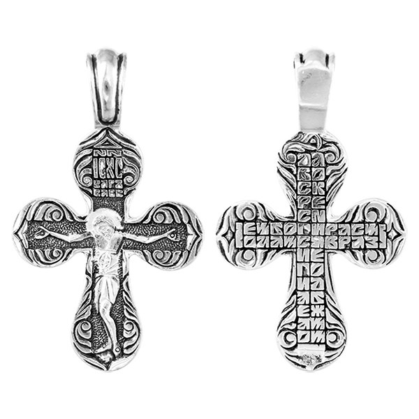 Крест серебрянный, Чернение (оксидирование), с корундами, Да воскреснет Бог..., коллекция "Санкт-Петербург", 5.63 гр., арт. ПР.К.000493