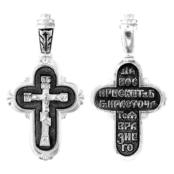 Крест серебрянный, Чернение (оксидирование), с корундами, Да воскреснет Бог..., коллекция "Санкт-Петербург", 3.20 гр., арт. ПР.К.000491