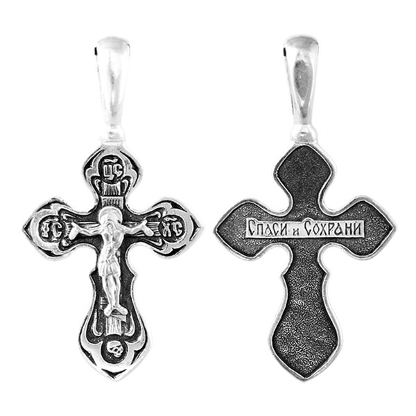 Крест серебрянный, Чернение (оксидирование), с корундами, Спаси и сохрани, коллекция "Санкт-Петербург", 2.80 гр., арт. ПР.К.000490