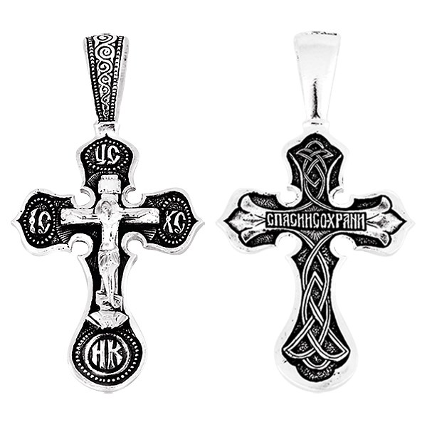 Крест серебрянный, Чернение (оксидирование), с корундами, Спаси и сохрани, коллекция "Санкт-Петербург", 6.40 гр., арт. ПР.К.000484