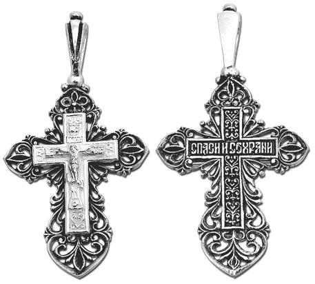 Крест серебрянный, Чернение (оксидирование), с корундами, коллекция "Санкт-Петербург", 3.22 гр., арт. 225863