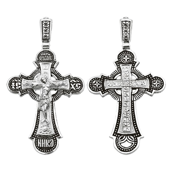 Крест серебрянный, Чернение (оксидирование), с корундами, Да воскреснет Бог..., коллекция "Санкт-Петербург", 6.24 гр., арт. ПР.К.000420