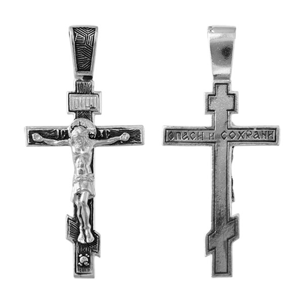 Крест серебрянный, Чернение (оксидирование), с корундами, Спаси и сохрани, коллекция "Санкт-Петербург", 4.60 гр., арт. ПР.К.000418
