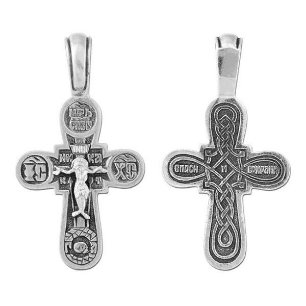 Крест серебрянный, Чернение (оксидирование), с корундами, Спаси и сохрани, коллекция "Санкт-Петербург", 3.74 гр., арт. ПР.К.000414