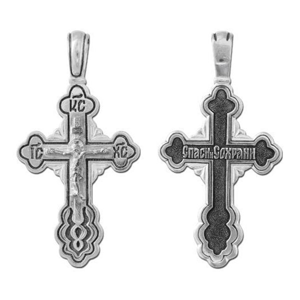 Крест серебрянный, Чернение (оксидирование), с корундами, Спаси и сохрани, коллекция "Санкт-Петербург", 6.57 гр., арт. ПР.К.000400