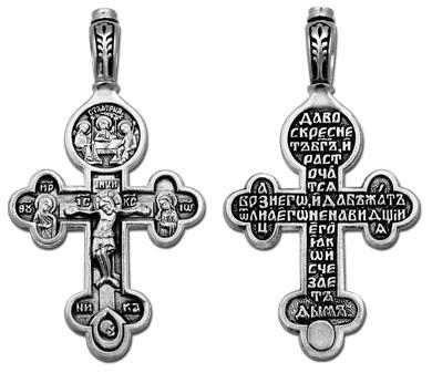 Крест серебрянный, Чернение (оксидирование), с корундами, Троица Св., Да воскреснет Бог..., коллекция "Санкт-Петербург", 7.03 гр., арт. 225337