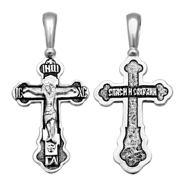 Крест серебрянный, Чернение (оксидирование), с корундами, Спаси и сохрани, коллекция "Санкт-Петербург", 3.00 гр., арт. ПР.К.000375