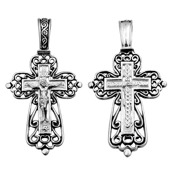Крест серебрянный, Чернение (оксидирование), с корундами, Спаси и сохрани, коллекция "Санкт-Петербург", 2.82 гр., арт. ПР.К.000365