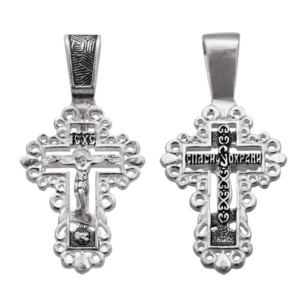 Крест серебрянный, Чернение (оксидирование), с корундами, Спаси и сохрани, коллекция "Санкт-Петербург", 2.28 гр., арт. ПР.К.000361