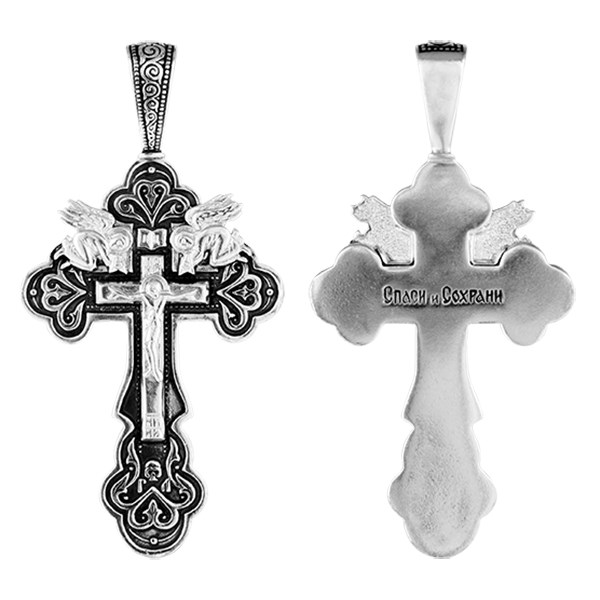 Крест серебрянный, Чернение (оксидирование), с корундами, Спаси и сохрани, коллекция "Санкт-Петербург", 9.30 гр., арт. ПР.К.000351