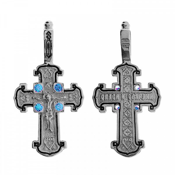 Крест серебрянный, Чернение (оксидирование), с корундами, Спаси и сохрани, коллекция "Санкт-Петербург", 1.77 гр., арт. ПР.К.000319