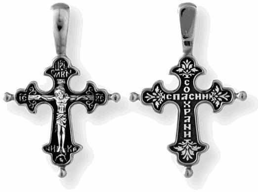 Крест серебрянный, Чернение (оксидирование), с корундами, Спаси и сохрани, коллекция "Санкт-Петербург", 3.25 гр., арт. 225753