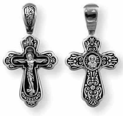 Крест серебрянный, Чернение (оксидирование), с корундами, Николай Св., коллекция "Санкт-Петербург", 3.48 гр., арт. 225773