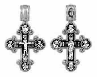 Крест серебрянный, Чернение (оксидирование), с корундами, Валаамская Божья Матерь, коллекция "Санкт-Петербург", 6.10 гр., арт. 225407