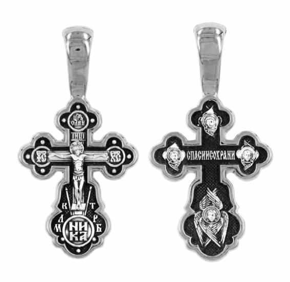 Крест серебрянный, Чернение (оксидирование), с корундами, Спаси и сохрани, коллекция "Санкт-Петербург", 4.12 гр., арт. 225611