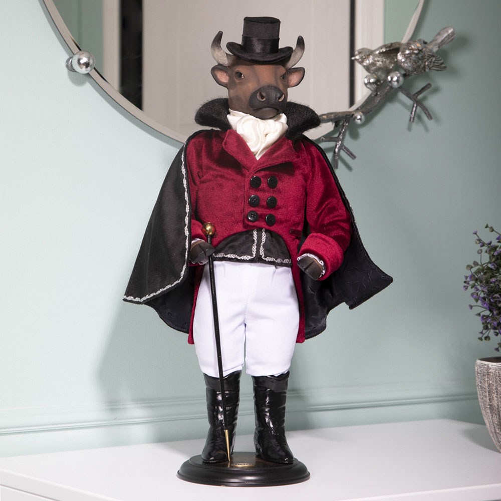 Адельман Георгий Викентьевич – известнейший доктор, талантливый хирург и врач-первопроходец 18-19 веков. А разве что-то вдохновляет сильнее, чем подвиги, совершенные ради благополучия и здоровья других людей? Загоревшись идеей выразить благодарность великому медику, наши дизайнеры создали коллекционную куклу – быка Барона Адельмана. Почему именно бык? Это статное животное – символ нового, 2021-го года, который, надеемся, принесёт Вам только хорошие новости. Кроме того, быки – олицетворение силы, мужества и железной целеустремлённости. Спокойный и сдержанный взгляд Барона Адельмана внушает уверенность и настраивает на продуктивную волну. Роскошь Костюм нашего барона выполнен в стиле интеллигенции прошлых веков и выглядит просто изумительно. Мелкие детали, над которыми кропотливо трудились мастера, будто оживляют статуэтку и наделяют её особым характером. Трудоёмкая и уникальная работа! Такой бык станет солидным дополнением любого интерьера и впечатлит Ваших гостей. Барон Адельман одет в модный по меркам 19-го века комплект: сюртук, жилет и брюки. Дополняют образ накрахмаленные манжеты и элегантное жабо – дань французской моде. Бархатный цилиндр крепится к голове с помощью магнита, что очень удобно и практично. Шпага отлита из бронзы и декорирована золотой поталью. Высшее качество Для создания коллекционной куклы Барон Адельман мастера применяют качественные и благородные материалы, такие как органза, бархат, искусственный мех, металлизированная тесьма, вельвет, габардин. Для создания эффекта «натуральной слезы» при росписи глаз мастера используют специальный акриловый даммарный лак, который увеличивает блеск, переливы и свечение. Если Вы мечтаете обзавестись памятной вещью, обладающей особой историей и созданной с душой, купите коллекционную куклу – быка Барона Адельмана на официальном сайте BOGACHO. Максимальный тираж - 500 шт.