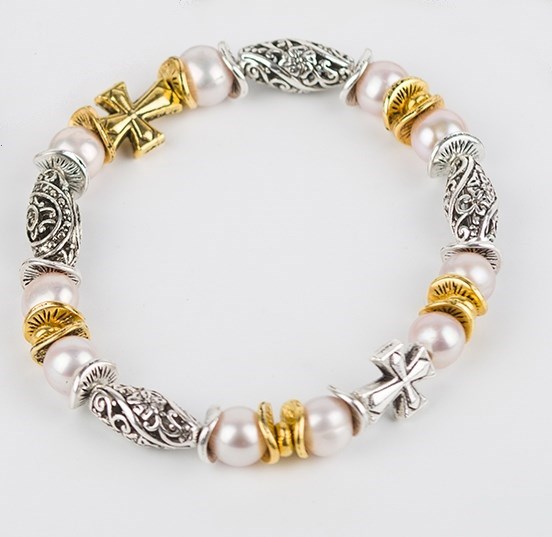 Браслет из жемчуга и металла с крестом, арт. 218684