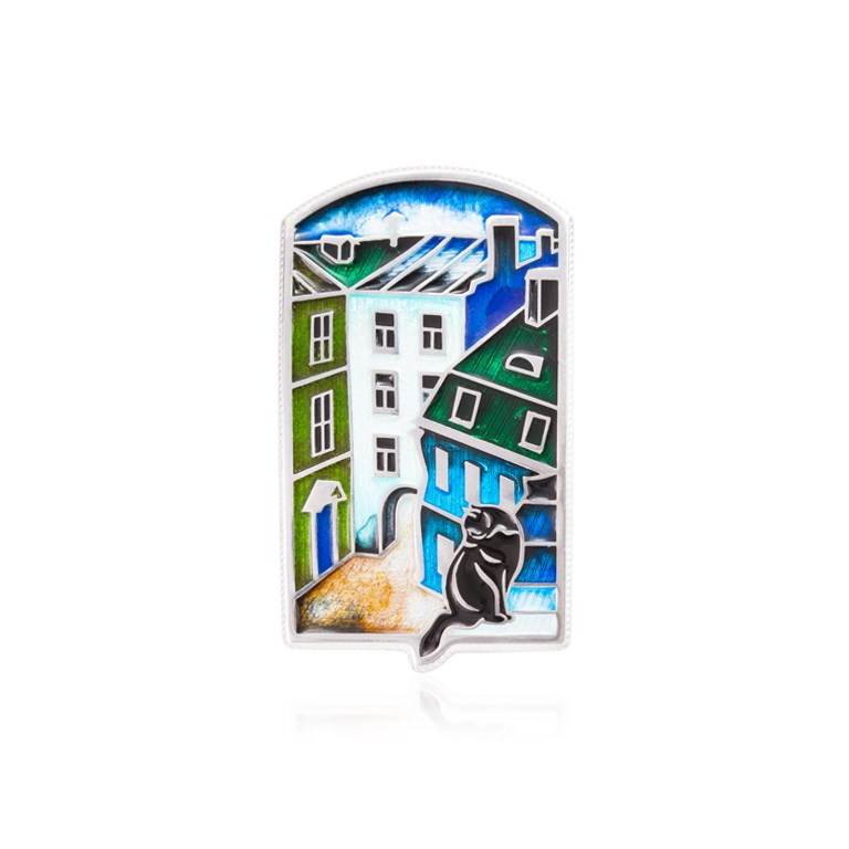Брошь «Дворик» выполнена в серебре 925* по технологии горячего эмалирования.
