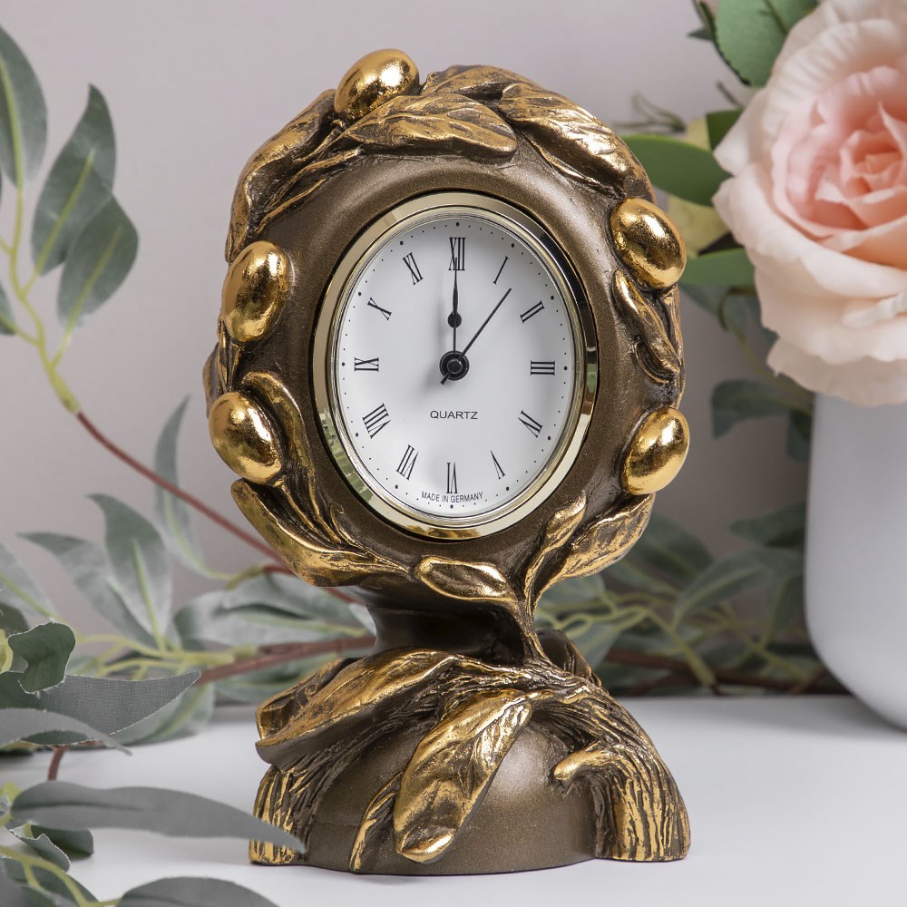 Часы "Oliva Branch" из литьевого мрамора BOGACHO. Стильные настольные часы BOGACHO отлиты из натурального коелгинского мрамора вручную, затем отшлифованы и патинированы. Аксессуар BOGACHO создан для гостиной, холла или кабинета. Наполните интерьер своего пространства атмосферой гармонии и природной элегантностью вместе с изделиями любимого бренда. Часы работают от одной батарейки маркировки GP 910A BC, RL 1, напряжение 1.5В, входит в комплект.