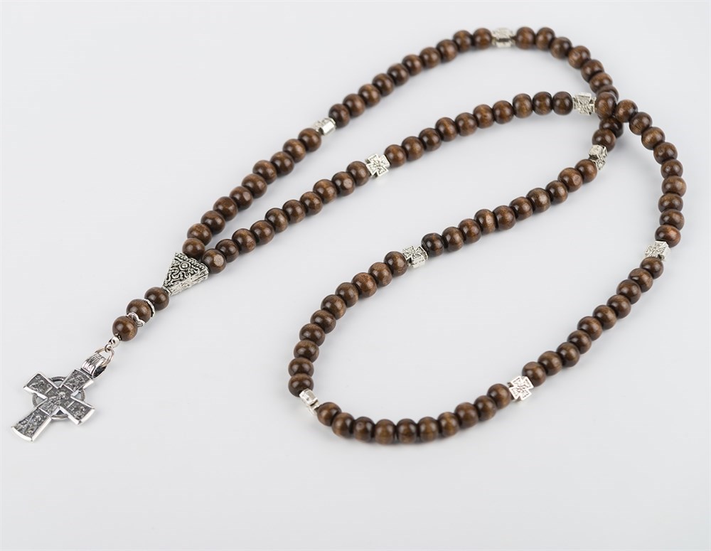 Четки из Дерева ( слива) 100 зерен. Диаметр бусины - 10 мм. Собраны на ювелирный трос. Фурнитура на четках изготовлена из ювелирного сплава. Крест изготовлен из латуни с серебрением и оксидированием.