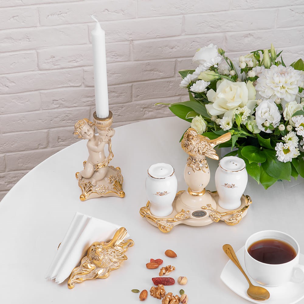 Салфетница Птичка Айвори изготовлена вручную из безупречного качества мраморной крошки. Обработанный и золоченый поталью аксессуар прослужит много лет, его поверхность останется такой же яркой и красивой, не почернеет и не станет тускнеть