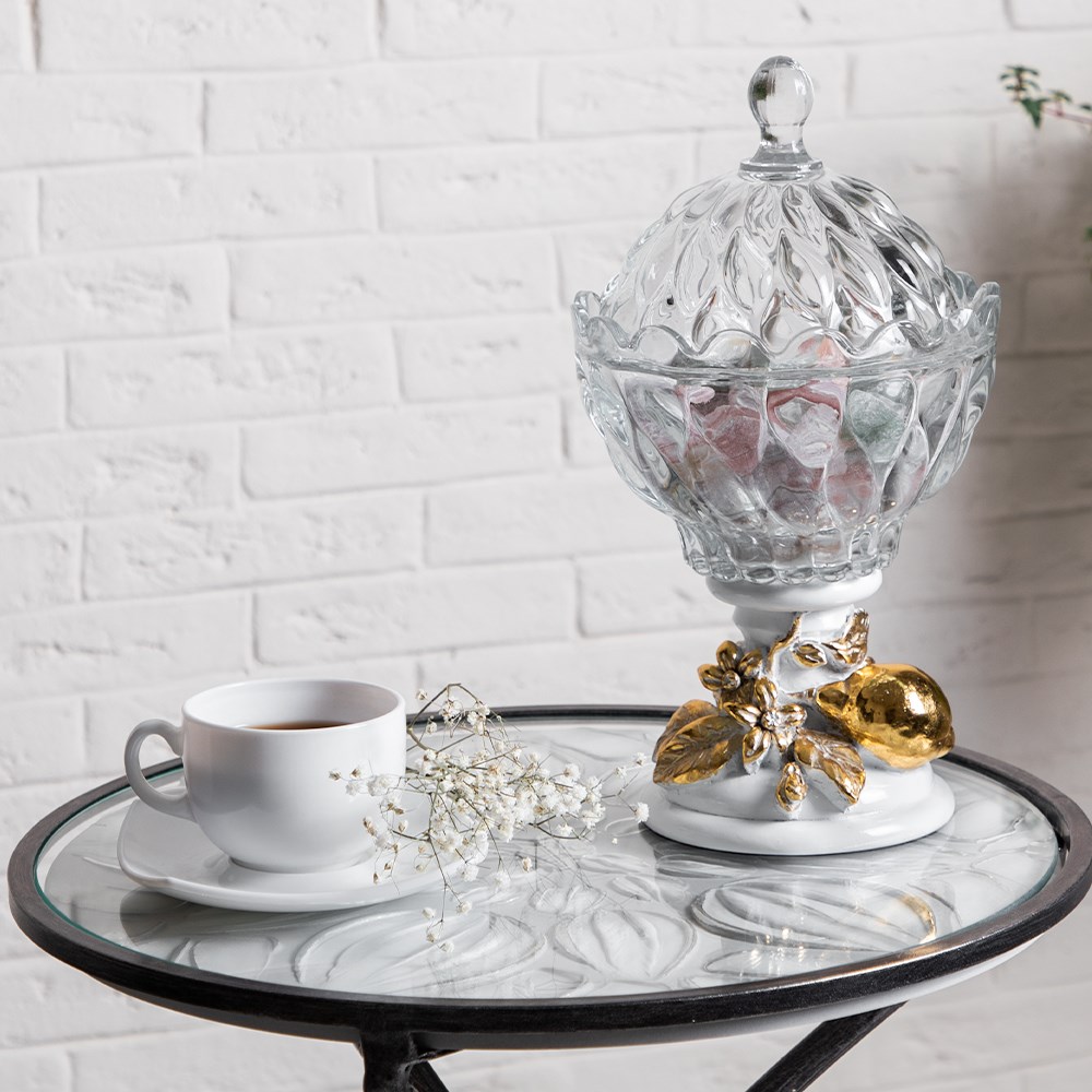 Добавьте в свой интерьер весенние нотки вместе с фруктовницей-конфетницей Лайм Дженоа Айс Мраморное золото. Утончённый флористический узор создаёт уют и гармонию, он является яркой деталью Вашего интерьера. Наполните каждое мгновение красками и незабываемыми эмоциями вместе с эксклюзивными изделиями BOGACHO. Лайм Дженоа отлично подойдёт в качестве подарка на новоселье, День Рождения и 8 марта. Ценители изысканных изделий точно не останутся равнодушными. Стеклянная чаша идёт в комплекте с мраморным основанием, её можно отсоединить для тщательного ухода в посудомоечной машине.