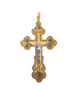 Это освященное православное изделие - Крест из золота 585 пробы. Имеет алмазную и лазерную огранку. Если хотите конкретную обработку, то уточните возможность ее выбора у менеджера при заказе. Весит, от 2,67 гр.