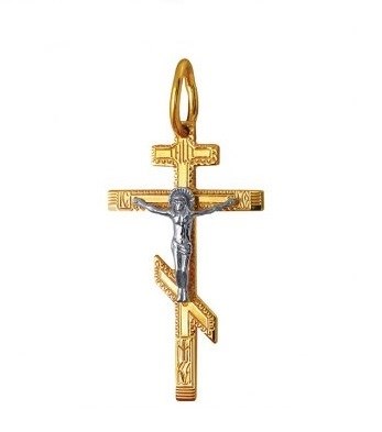 Это освященное православное изделие - Крест из золота 585 пробы. Имеет алмазную и лазерную огранку. Если хотите конкретную обработку, то уточните возможность ее выбора у менеджера при заказе. Весит, от 1,31 гр.